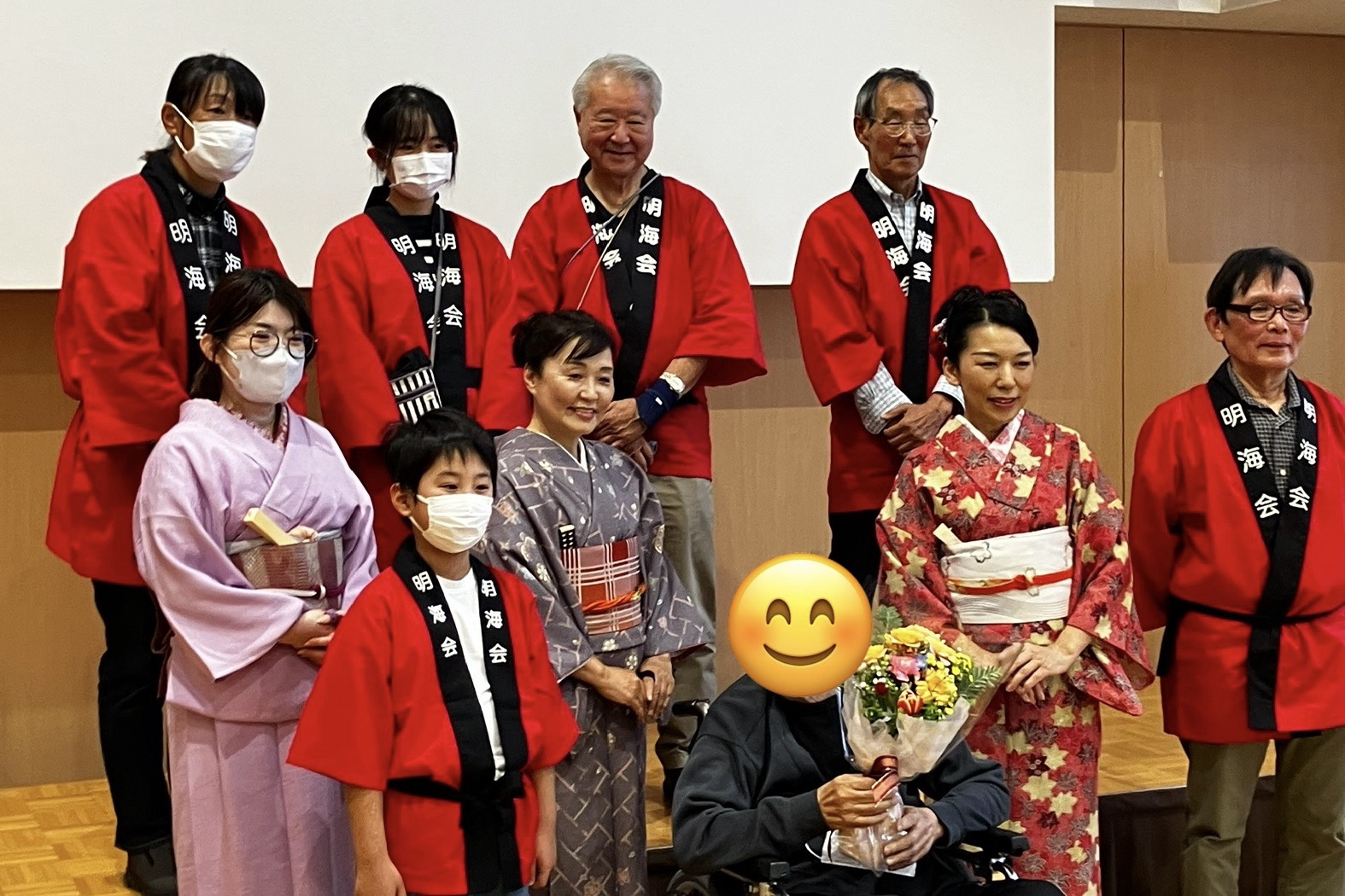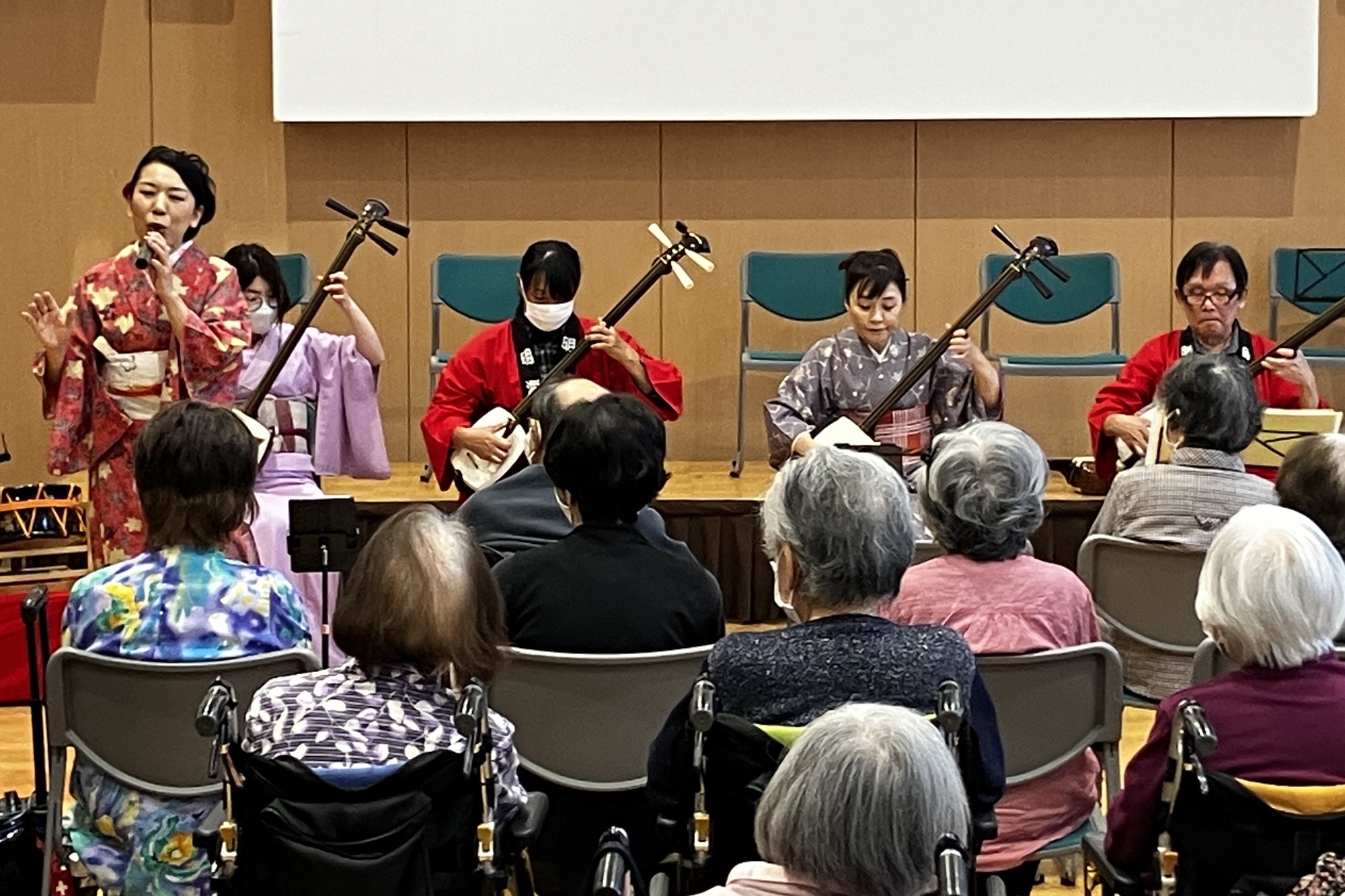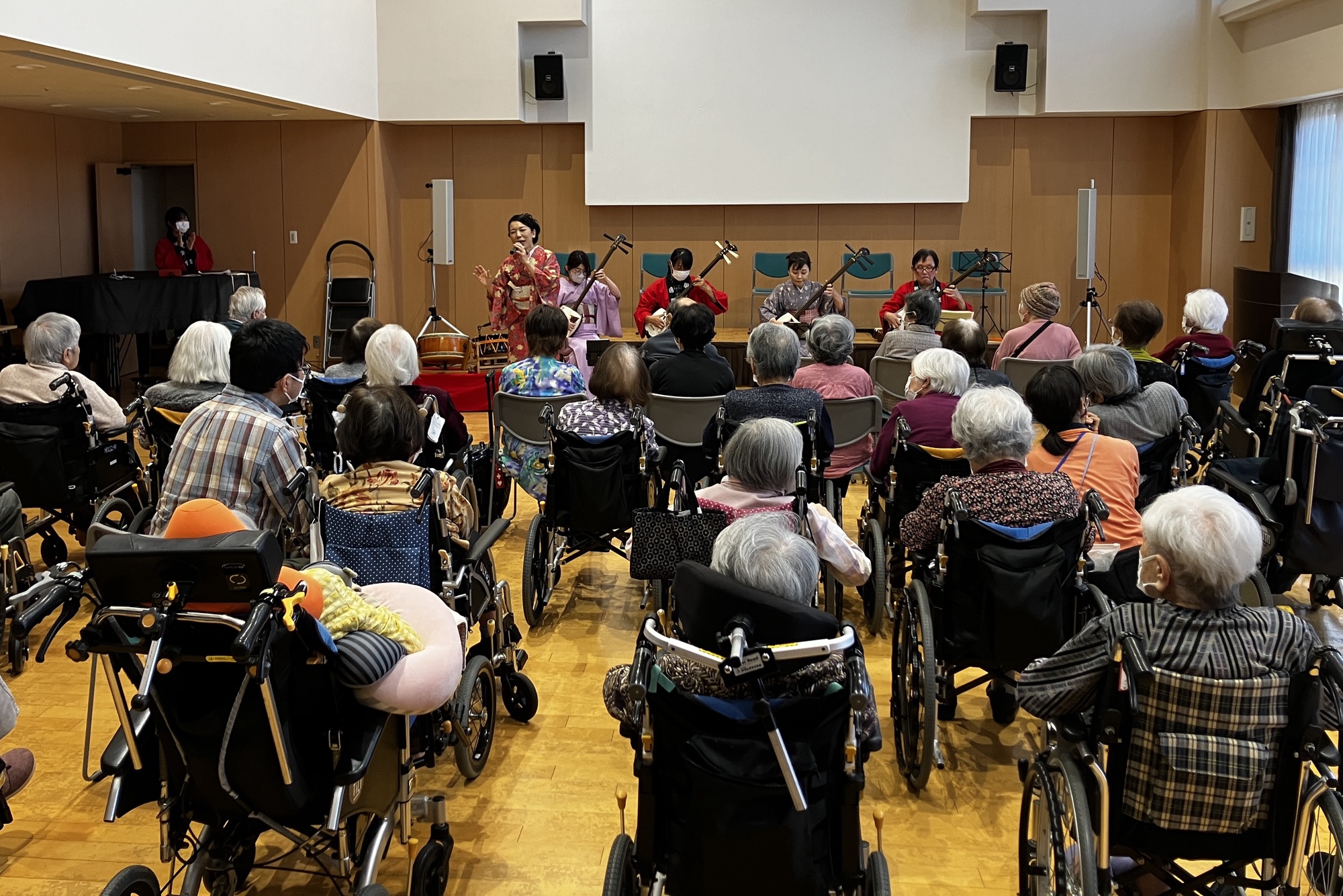 お弟子さんと一緒に、市内老人施設へのボランティア活動。